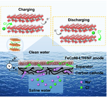 针对这一挑战,孙雪菲教授课题组设计并构建了一种基于多孔FeCoNi层状三元氢氧化物材料的流通型电化学系统。该电极通过三元组分调控与原位合成技术,显著增强了对氯离子的吸附与存储能力,实现了高容量、快动力学与长循环稳定的优异性能。系统在无膜流通结构下运行,不仅结构简化、能耗降低,还具备良好的工程放大潜力,为含盐废水的高效净化与资源回收提供了新的技术路径。