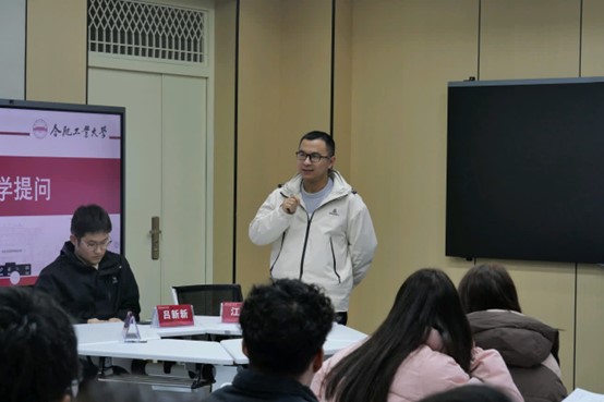 活动伊始,江涛、吕新新两位博士生同学详细介绍了自己的科研方法和经验。他们提到,合理规划时间、注重工作效率、及时进行总结是取得优异成绩的关键。同时,他们还分享了自己如何利用课余时间进行文献阅读和拓展学习的经验,鼓励同学们要勇于探索未知领域,不断提升自己的综合素质。随后,黄岩同学带来了他的创新项目分享。他介绍了自己如何在硕士阶段锻炼科研能力,以及在这个过程中遇到的挑战和收获。他的分享不仅让在场的同学们感受到了科技创新的魅力,也激发了大家投身科技创新的热情。最后,三位同学还与大家进行了互动交流。同学们纷纷提出自己在学习和生活中遇到的问题和困惑,优秀学生代表则耐心解答,并给出了宝贵的建议和鼓励。
