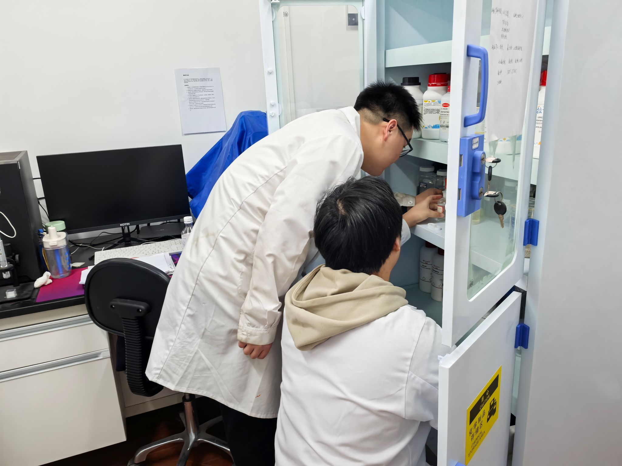 在检查过程中,博士党员同学针对验室的消防设备、化学品存放、用电安全、实验操作规范等方面进行详细排查记录。大家深入实验室的每一个角落,仔细检查实验设备、消防器材、安全通道等关键部位,确保不遗漏任何一个安全隐患。同时,党员们积极宣传安全知识,提醒实验室人员时刻保持警惕,共同维护良好的科研安全环境。