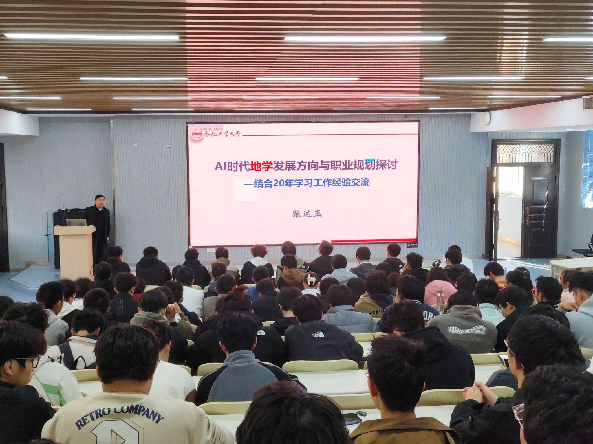 张达玉以“AI时代地学发展方向与职业规划探讨”为题,结合自身多年的学习工作经验,从地学专业时代需求、我校地学专业培养特色、人才培养质量与成效等方面进行了详细介绍。张达玉鼓励同学们打牢专业基础,积极参加社会实践和专业实践,努力将自己所学的理论知识运用到实践当中,做到在学习中求进步,在实践中求发展,努力成长为一名复合型创新人才。