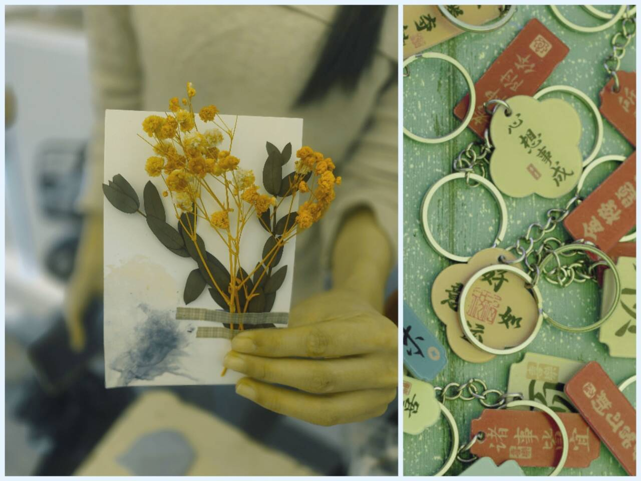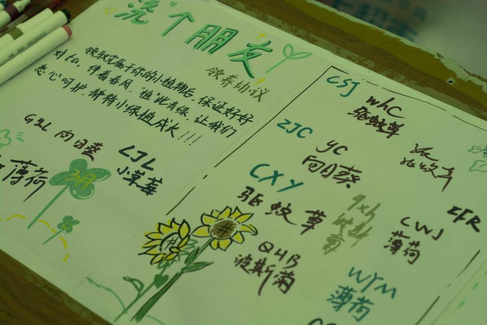 活动现场设置五大特色板块:植物拓染区以新鲜花叶为素材,通过敲击拓印将自然纹理定格成艺术书签;创意打卡点提供樱花镂空 KT 板与异形镜,师生们在光影交织中捕捉春日浪漫;手作明信片区将干花装饰与丙烯绘画结合,参与者亲手制作春日寄语;绿植交换站以“植物传情”为纽带,通过盆栽领养与养护承诺传递绿色情谊;最引人注目的“愿望树”"装置,收集青春梦想的树叶便签,共同构筑起充满希望的生态图腾。