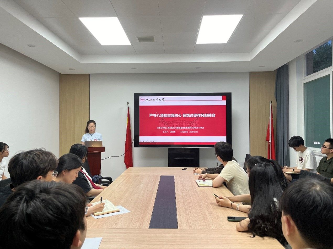 活动伊始,2022级环境工程本科生潘滢杰带领学员精读了《十八届中央政治局关于改进工作作风、密切联系群众的八项规定》原文,并回顾了八项规定发展历程。她号召同学们严格对标中央八项规定精神,把学习成果融入日常,在学业上锚定方向,在工作中锤炼党性,在生活里严守底线,用务实作风涵养青年担当。随后在讨论环节,学员们踊跃发言,结合自身学习生活实际谈论青年党员应当如何加强自身党性修养、践行八项规定精神,以良好作风发挥先锋模范作用。