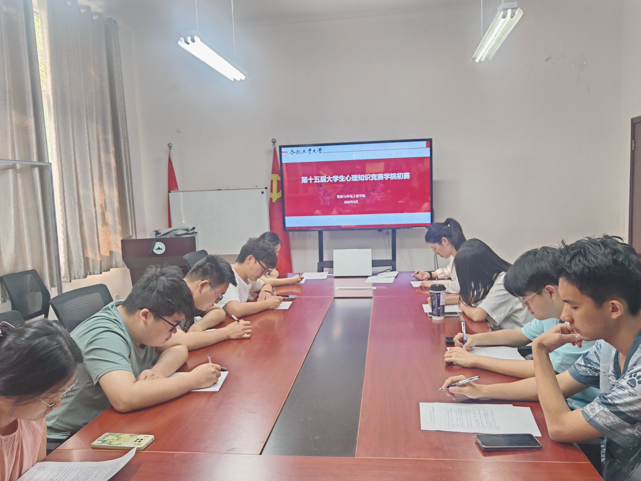 初赛分为心理健康知识指导和知识笔试两个阶段。前期,各年级辅导员、学院资心社及各班心理委员积极动员,百余名同学参与了心理健康知识学习、讨论;当天,20余名学生代表参加了心理知识竞赛笔试,同学们积极答题,充分展示自己的学习效果。竞赛结束后,学院结合参赛学生的学习、讨论情况和答题情况评定成绩,最终选拔武庭辕等6名同学组成学院复赛队伍。