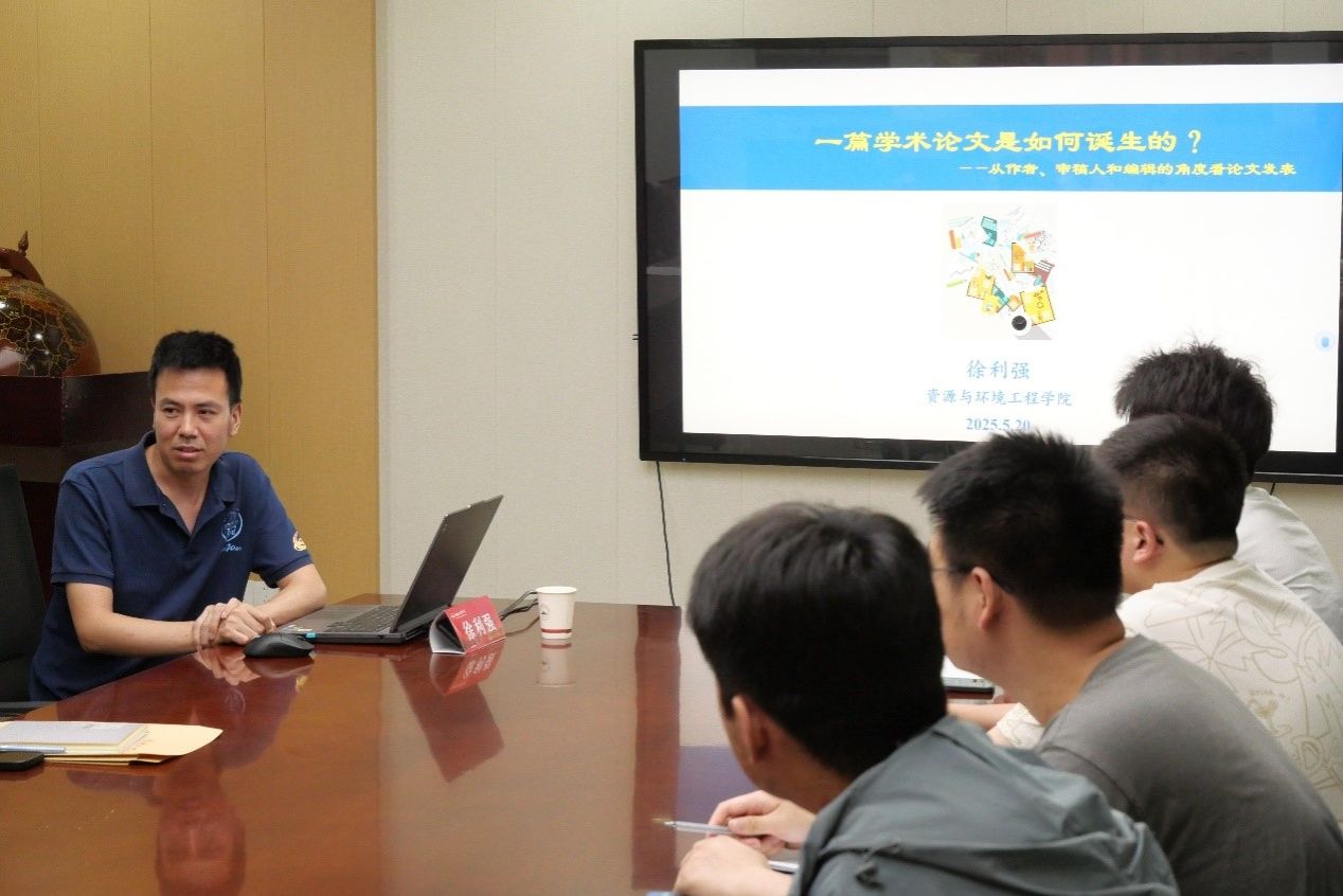活动中,徐利强首先对比分析了纸质出版物的主要类型,强调了学术论文出版的严格标准。他结合自身科研经历指出学术论文的重要价值,“它能让研究成果突破时空限制,为后续研究奠定基础,实现科学知识的代际传承。”随后,徐老师针对论文发表流程,纠正了“写作-提交-发表”的简单认知,详细解构了完整流程。他表示,扎实的研究基础、精准地选择期刊、可靠的审稿专家都是论文顺利见刊的重要因素。论文发表过程中可能遇到审稿周期波动、评审意见分歧甚至拒稿等挑战,徐利强建议同学们夯实研究基础、重视评审意见、理性看待拒稿、提升论文质量。他表示,每篇论文都是多方协作的结晶,从作者、审稿人到编辑团队,每个角色都在推动学术进步。活动尾声,徐利强与同学们互动交流,认真解答了论文撰写格式、结构安排等问题,现场讨论热烈。
