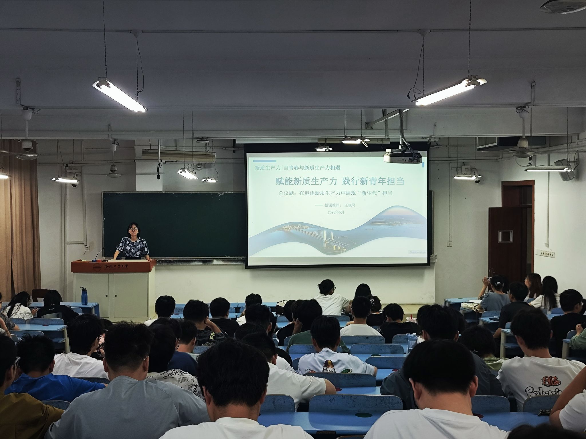 学院党委副书记、纪委书记王锐琴围绕深入学习习近平总书记关于新质生产力的重要论述,从“全面把握发展新质生产力的重大意义”“全面认识发展新质生产力的核心要义”“追逐新质生产力过程中的青年担当”等三个方面,与大家进行交流探讨。最后,王锐琴勉励同学们一要筑牢信仰之基,做新时代的红色传承者,二要培养创新意识,勇于开拓攻坚,三要脚踏实地,做新征程的躬身践行者,努力成长为堪当大任的时代新人。