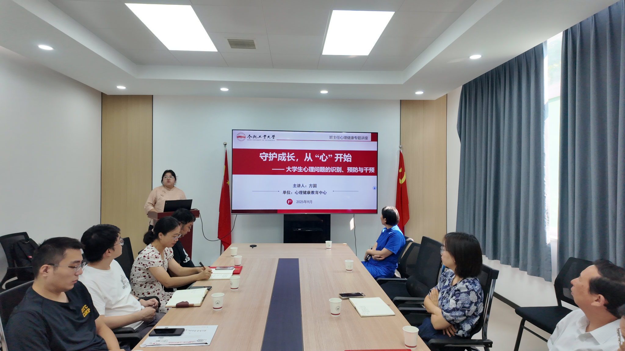聘任仪式结束后,校心理健康教育中心方圆老师为班主任作心理育人工作专题培训。她围绕大学生心理问题的识别、预防与干预,聚焦班主任工作实际需求,结合典型案例,系统阐释大学生常见心理问题的特征表现,提供具体了识别标准与方法指导。