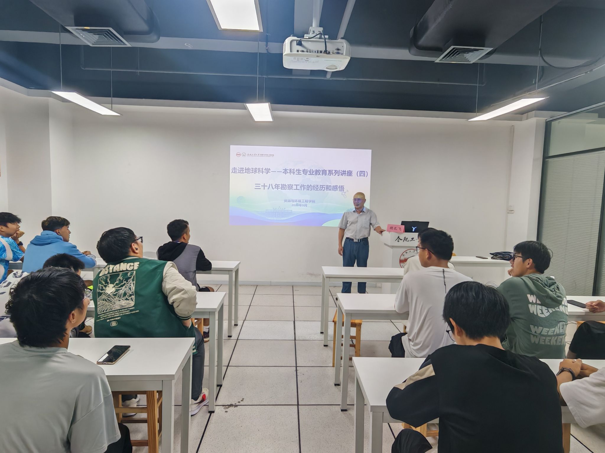 在首个全国科普月到来之际,为普及地球科学知识、激发专业兴趣,9月25日下午,williamhill威廉希尔官网在翡翠湖校区科教楼A座603会议室举办“走进地球科学,启航大学生涯”为主题的新生专业认知讲座。安徽省勘察大师、高级工程师胡孔飞受邀主讲,勘查专业全体新生参加讲座。