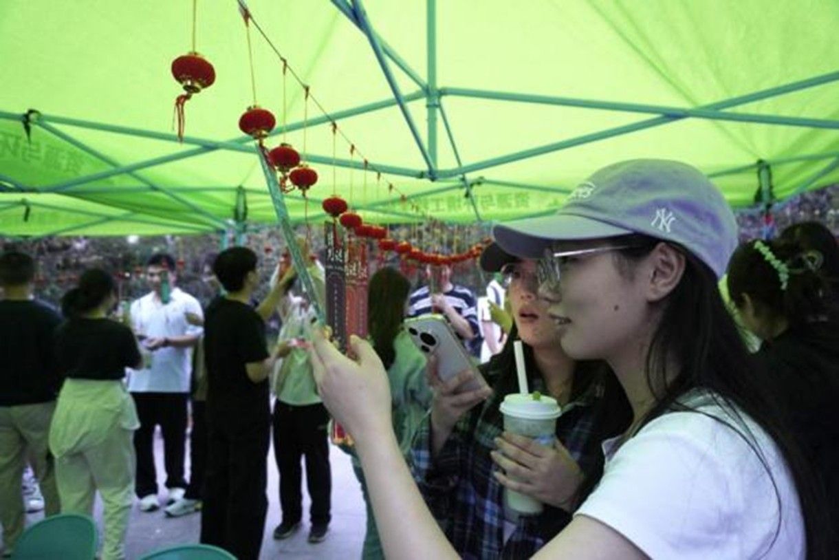 活动前,研会成员忙碌而有序地布置现场,静候师生共猜灯谜,同享中秋雅趣。活动现场,一盏盏灯笼摇曳生辉,灯谜或风趣巧妙,或意蕴深远,吸引师生纷纷驻足思索。智慧在谜面与谜底间流转,每当有人猜中,便激起一片掌声与欢笑。这不仅拉近了同学们的距离,深刻感悟中华优秀传统文化的魅力。