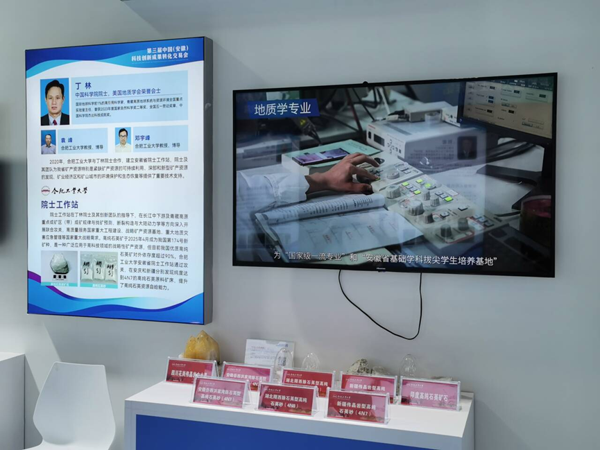 近日,第三届中国(安徽)科技创新成果转化交易会在合肥滨湖国际会展中心举办。williamhill威廉希尔官网师生代表受邀参展,重点展示了williamhill威廉希尔官网院士工作站在高纯石英矿研究领域取得的显著成果,受到广泛关注。安徽省科技厅领导、企业代表及科研同行前来参观交流,对我校成果给予高度评价。